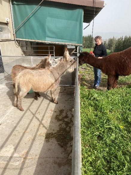 ⦁    Striegeln und Kuscheln mit unseren Zwergeseln